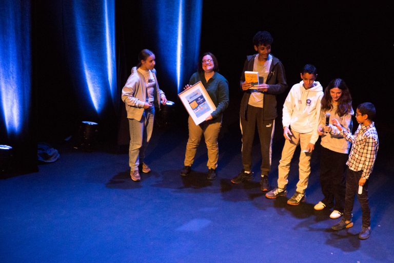 La remise du Prix s’est tenue lors de la cérémonie d’Inauguration du Festival, le vendredi 10 octobre, au Théâtre Emile Loubet de Montélimar. L’autrice, émue, a reçue sa distinction de la part des Ados du Comité Ado du Collège Europa.