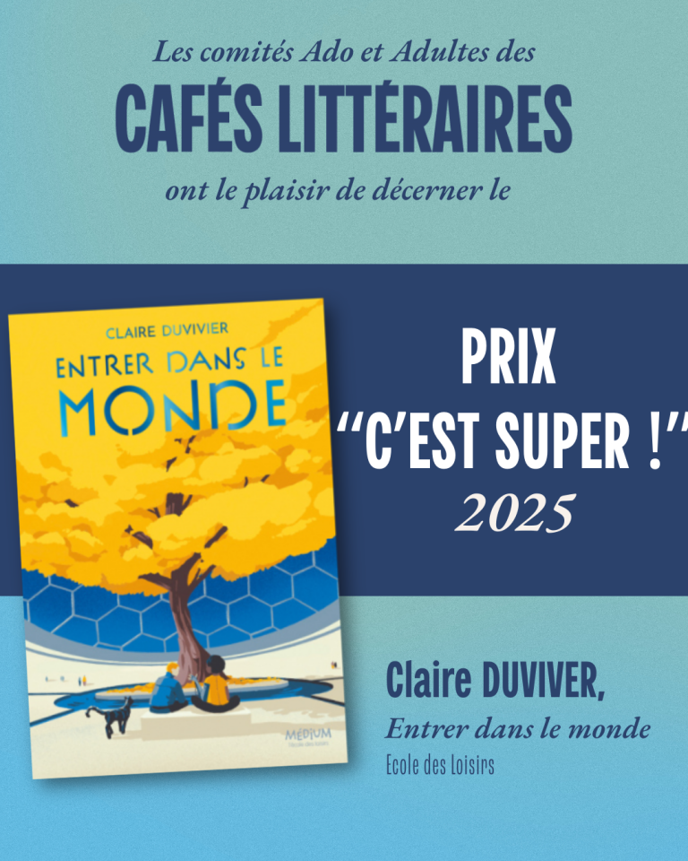 En 2025, le Prix « C’est Super » a distingué l’autrice et éditrice Claire Duvivier, pour son œuvre Entrer dans le monde, chez L’Ecole des Loisirs. Cette distinction, attribuée par les Comités Ado et Adultes des Cafés Littéraires, vient saluer un texte fort, sensible et profondément ancré dans les enjeux contemporains.